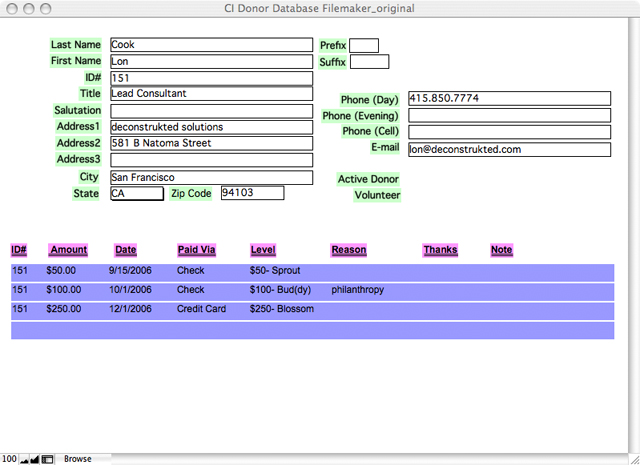Developed a branded non-profit database, tracking donors: contact info, donation history, demographic reporting.
